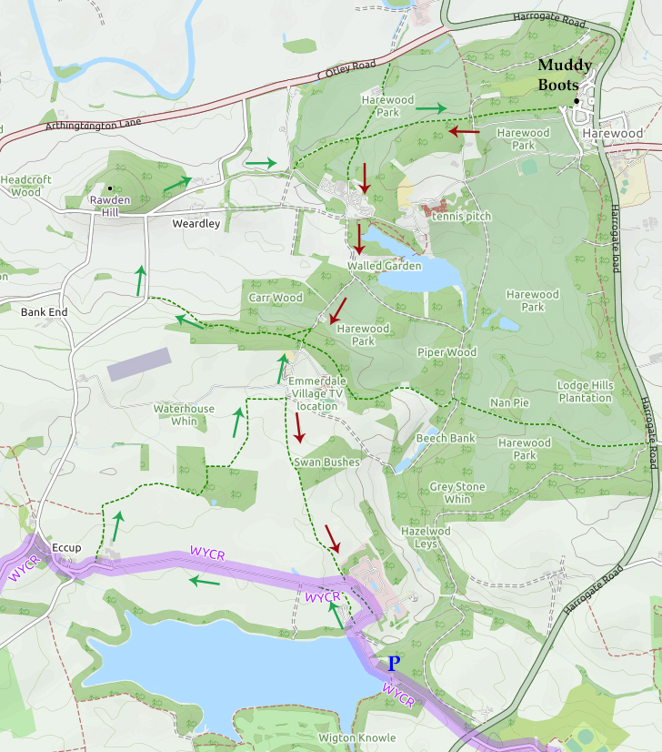 This is a mountain bike from Eccup Reservoir to the Muddy Boots café in Harewood and back.