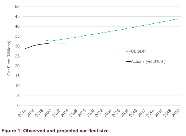 Although the government thinks there will be far more vehicles, they expect them to be driven 14% less by 2050.