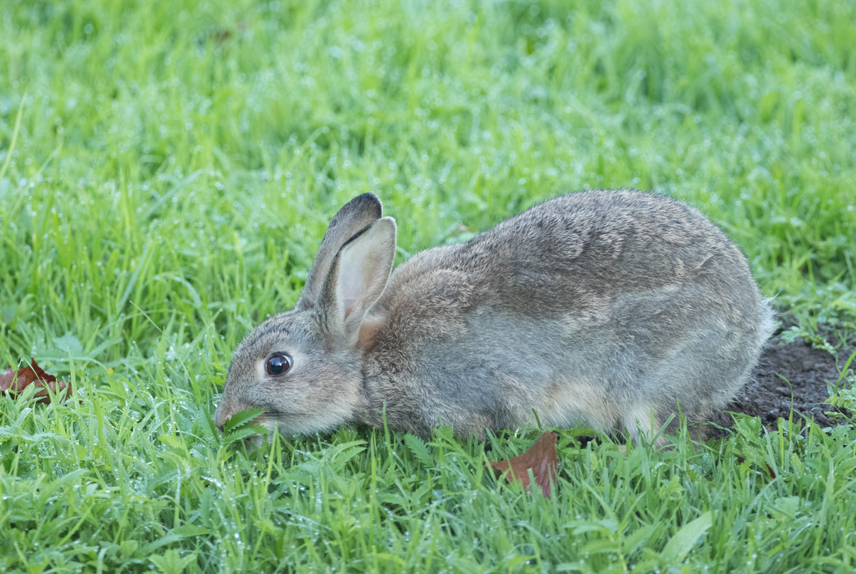 I suppose grass is the staple food of rabbits, but perhaps they enjoy other leaves and vegetation too. Maybe I'm imagining it, but this one seems to have found something especially tasty to eat.